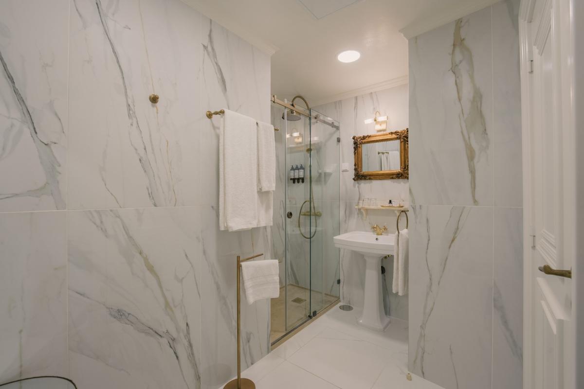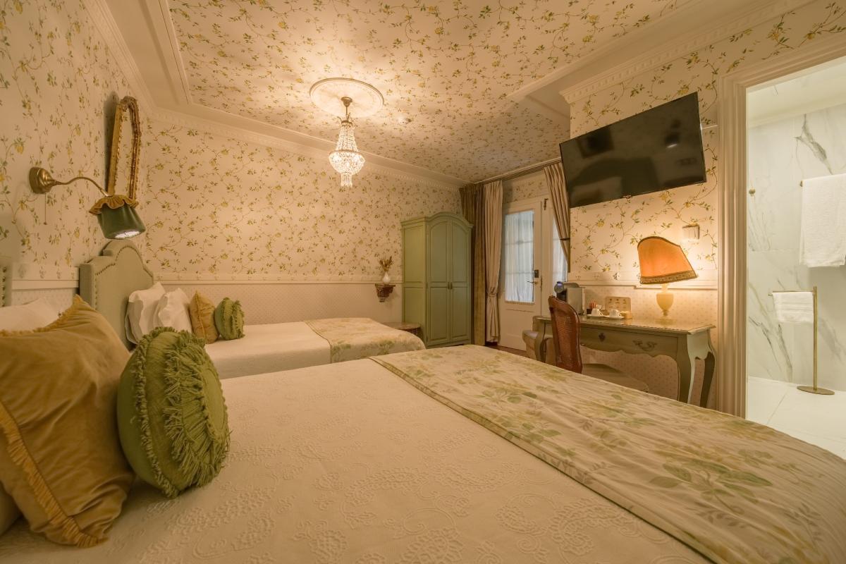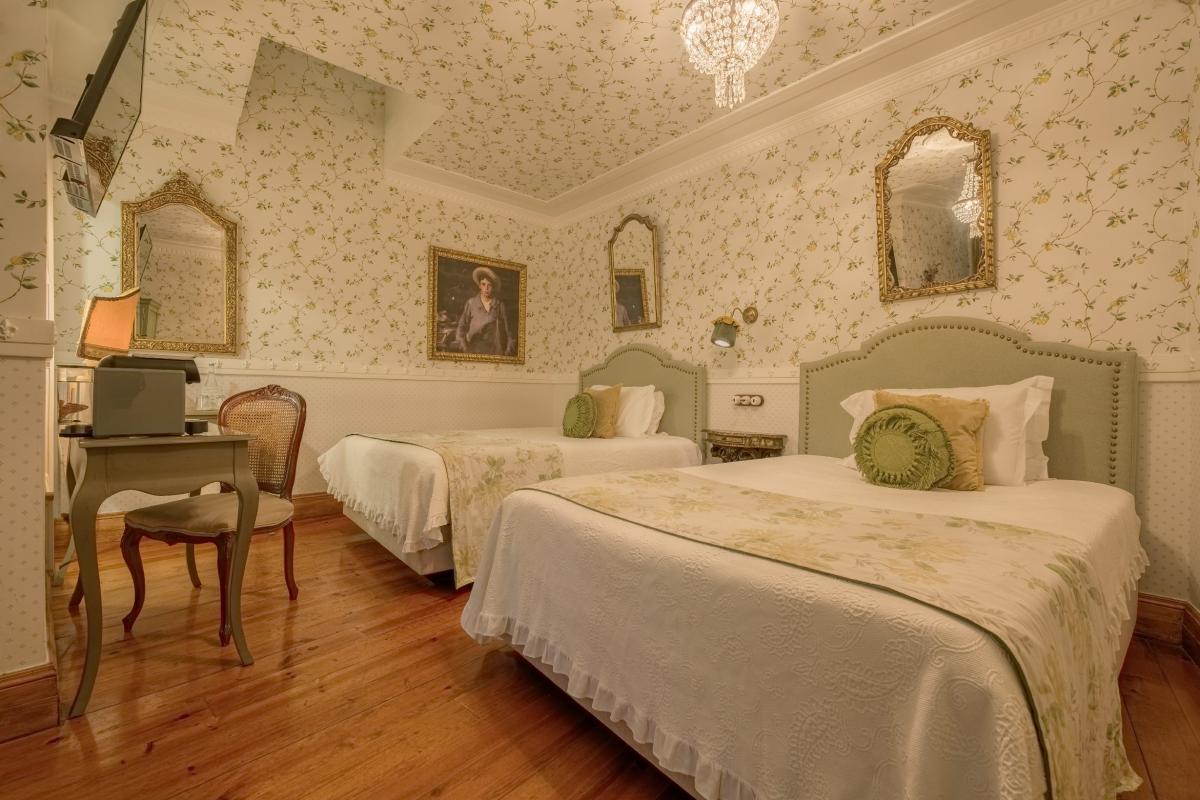 The combination of soft pastel tones, the wallpaper with delicate floral patterns, the vintage furniture, and the crystal chandeliers creates a cozy space, immersing us in an atmosphere marked by elegance.