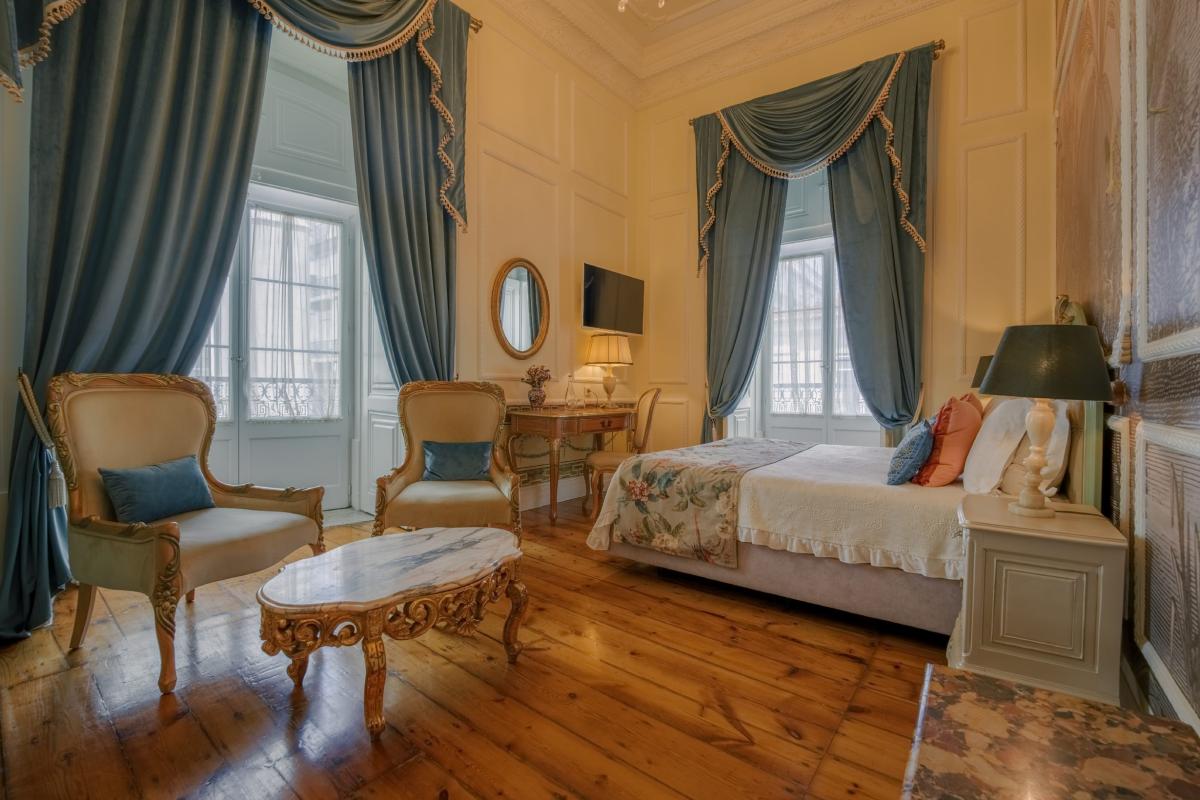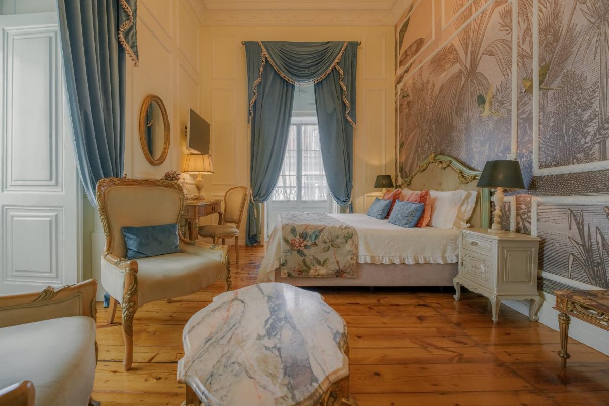 The dominant colors, such as gold and touches of royal blue, as well as the floral motifs, create an environment of majestic tranquility. The two small balconies encourage you to discover the city with their incomparable brightness.
